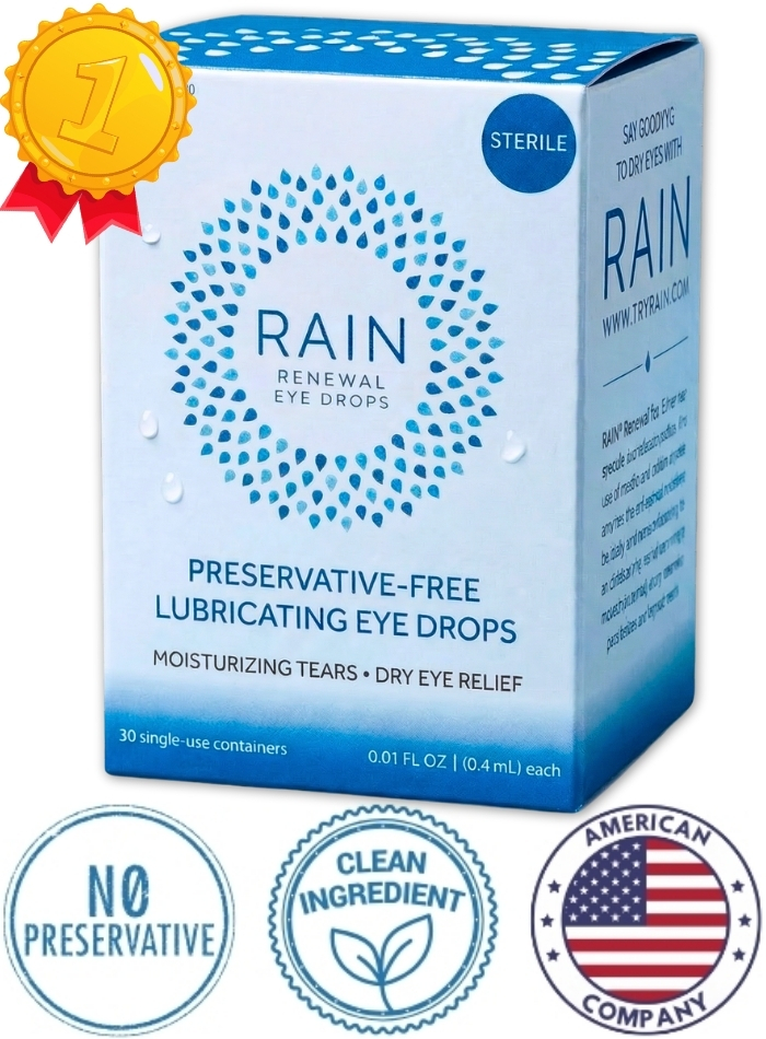 CUSTOMERS SAY: Customers praise the comfort and feel of the more natural moisturizing ingredients. They say the relief is also consistent thanks to its use of a simple clean formula that is gentle on the eyes. Users who regularly suffer from dry eyes, along with a practicing ophthalmologist, tested Rain and felt very confident with the preservative free, non-GMO formula produced only in FDA approved facilities with a solid reputation.